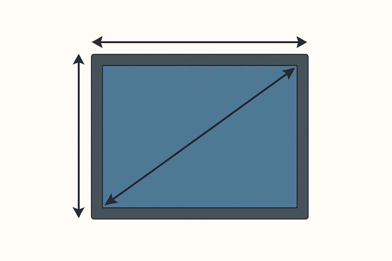 | 對角線測量法 | 使用軟尺或直尺,從顯示區(qū)域一角(左上或左下)到對角角(右下或右上)測量顯示畫面可見區(qū)域的邊緣,不包括邊框(bezel)。記錄長度 L(厘米或英寸),如果是厘米單位可除以 2.54 得到英寸 | 簡單直接,能夠快速判斷屏幕型號/尺寸;普遍被接受的標(biāo)準(zhǔn)方法。 | 測量位置不準(zhǔn)確(測到了邊框、或偏離角落)、工具刻度誤差、顯示區(qū)邊緣視覺邊界不清可能導(dǎo)致誤差。 |